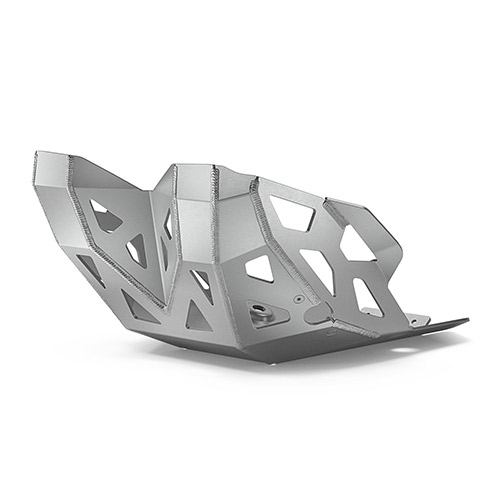 走行時の飛び石などからエンジン・エキゾーストパイプ等をガードするスキッドプレート。標準プレートと比較して保護範囲が広くなり、プレートの厚さも4mmにアップ。装着することでより損傷軽減効果が高まります。