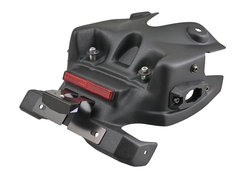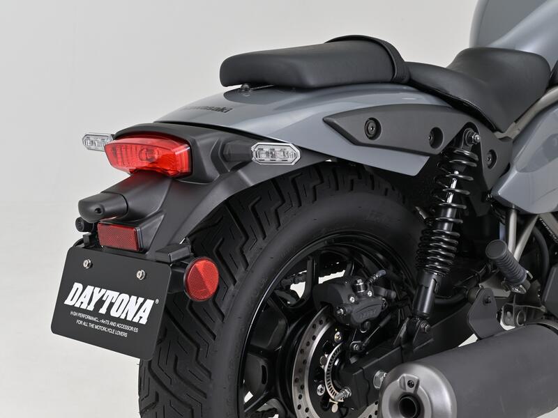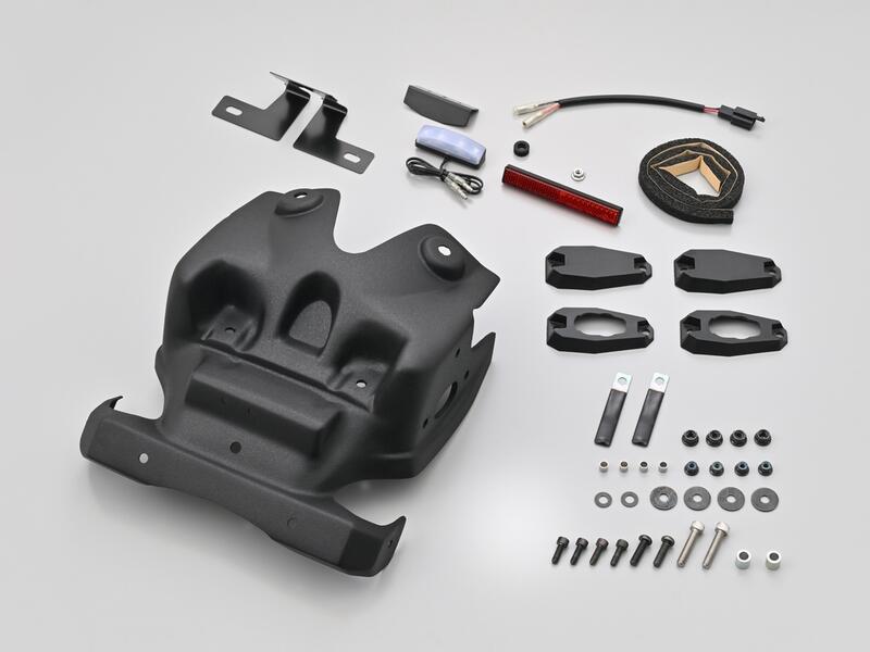 ライセンスランプ、リア用スリムリフレクター、社外ウインカー用アタッチメントが付属します。