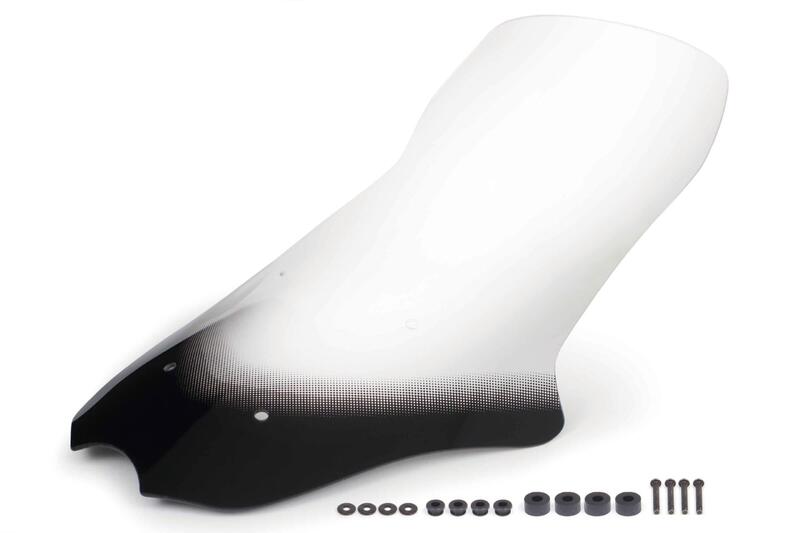 又、視認性、透過性に優れたクリアスクリーンをベースに、ドットグラデーションのブラック塗装を施すことで、デザイン性を高め、車両をスタイリッシュに演出します。
