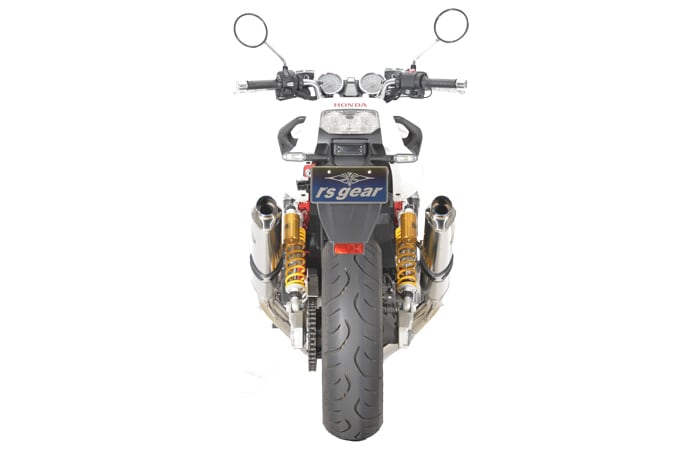 マフラー素材にはチタン合金を採用し、細身の異形オーバルツインチタンサイレンサーにより大幅な軽量化と、魅惑の重低音サウンドを実現しました。