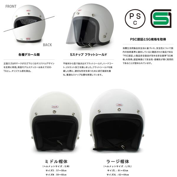 1954年、ベルオートパーツよりヘルメット部門として独立し、最初に着手した「500」と言われるジェット型ヘルメット。500は発泡ライナーを内装に採用した画期的なヘルメットであり、その後「500-TX」というモデル名で継承されていきます。今回のモデルは、1968年頃に生産された「500-TX」をモチーフに、現在の技術を駆使してリメイク。今のジェットヘルメットには無い、あえて当時の面影を残したこだわりのヘルメットとなっております。