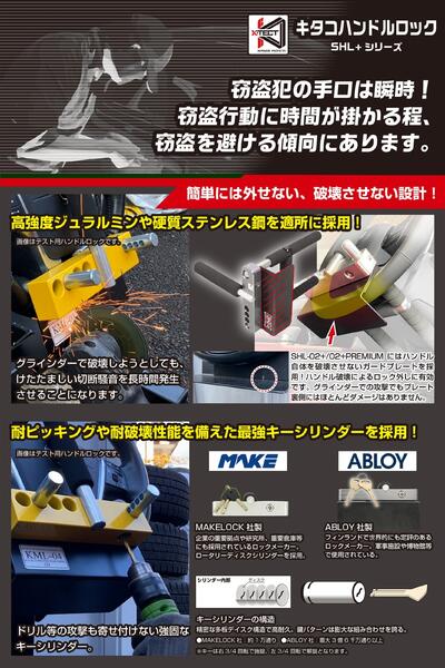 独自構造による高い装着安定性と存在感のあるデザインが、物理的な抑止効果を高め、愛車の盗難対策に最適です。