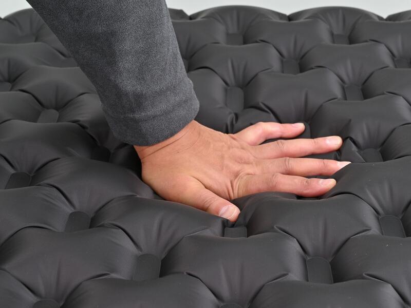 ※膨らませる際には、市販のエアマット用ポンプを使用してください。口で膨らませると湿気が内部に入り商品劣化の原因となります。