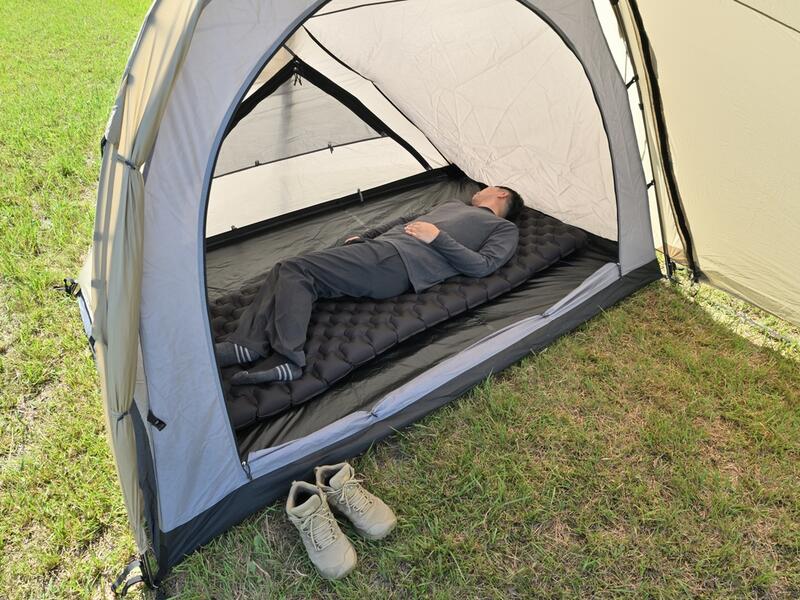 10cmの厚みで地面の凹凸も、シートの段差も感じさせない。