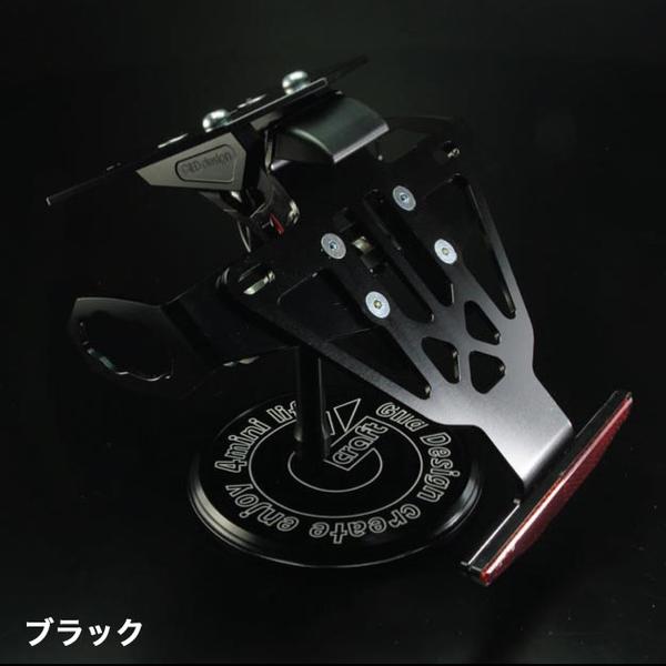 天板とナンバーを繋ぐ部分にアルミ削り出しステーを採用した、他社とは異なる唯一無二のスタイル。公道走行を可能にする、専用LEDナンバー灯とリクレクターキットを付属しています。