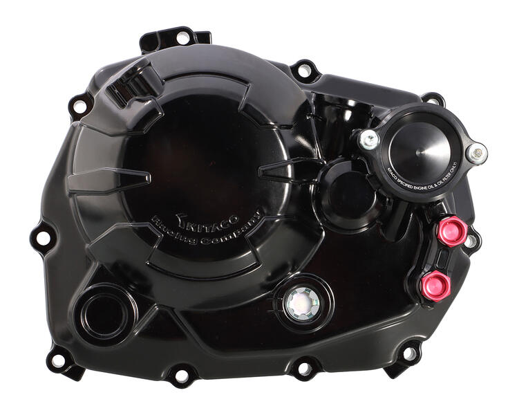 グロム系エンジン車用のアルミダイキャスト製のスポーティーかつ高品質なクラッチカバーです。オイルフィルターの内蔵やオイルクーラーの取り出し口を設け、レースからストリート車のカスタムまで幅広く対応。内部のクラッチ本体はノーマルクラッチに対応します。