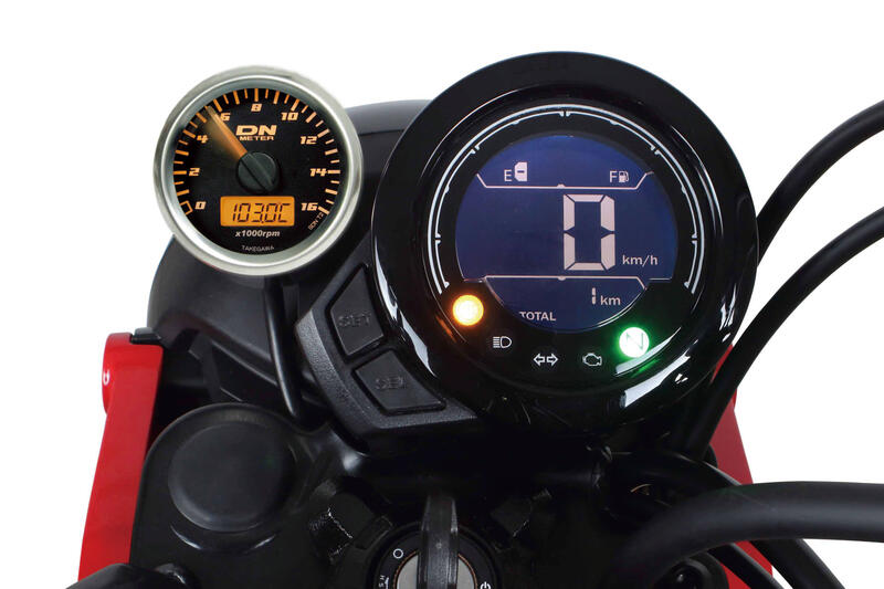 本製品は純正スピードメーターの横に配置出来るメーターステー、車両専用サブハーネスが付属している為、純正部品の加工や配線加工の必要が無く、スモールDNタコメーター(オレンジLED)をCT125(JA65)に取付け出来ます。