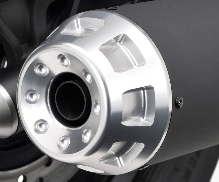 個性的なアルミ削り出しテールコーンを採用したスリップオンマフラー。