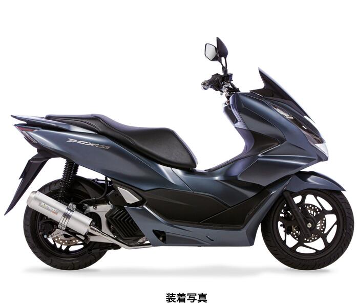 ホンダ PCX125、160共通のフルエキゾーストタイプマフラー。出力を上乗せしつつ抑えめの音量で住宅街でも安心です。