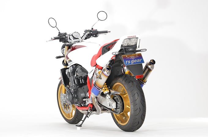 マフラー素材にはチタン合金を採用し、細身の異形オーバルツインチタンサイレンサーにより大幅な軽量化と、魅惑の重低音サウンドを実現しました。