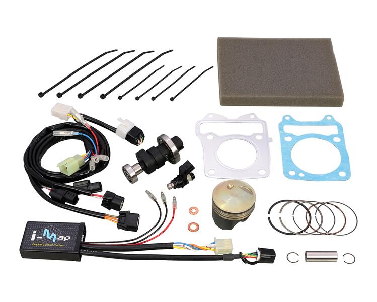 125ccのままで高出力化が可能なハイコンプピストン、ハイカムシャフト、燃料噴射量をコントロールするI-MAPがワンセットになったコンプリートKIT。ノーマルと比較にならないパワーを搾り出せます。