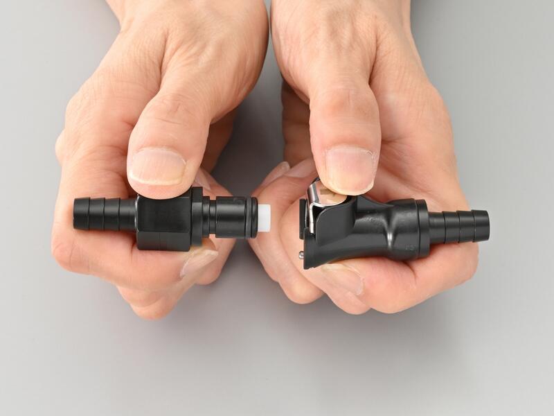 フューエルタンクの脱着時に非常に便利なフューエルホースジョイント。