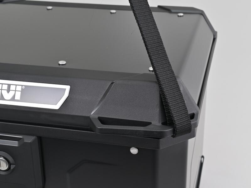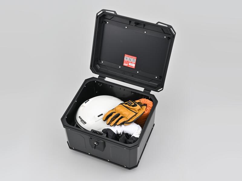 上蓋に4か所のベルトループを備え、シートバッグなどを蓋の上に積載できます。