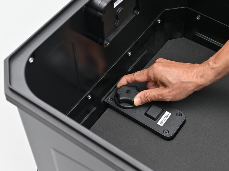 蓋を閉めるだけでロックが掛かる「プッシュダウンクローズ」システム採用。