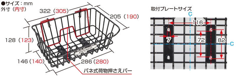 〇バスケットサイズ 開口部:322mm×205mm 底部:286mm×146mm 深さ:128mm