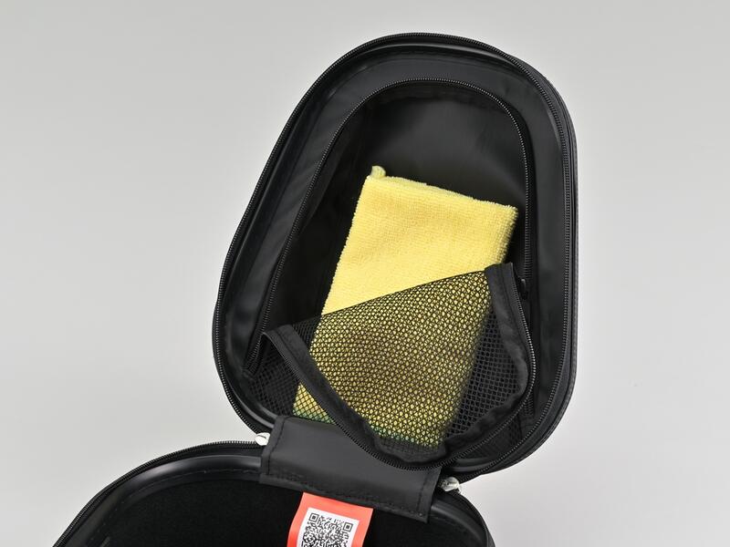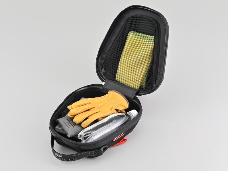 簡単に脱着ができ、磁石を使わないハードシェルタイプのタンクバッグ。