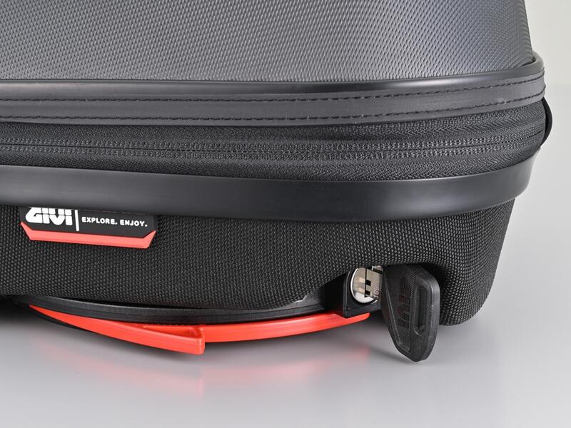 バッグとタンクはカギで施錠でき、開口部のファスナーもダイヤルロック可能です。