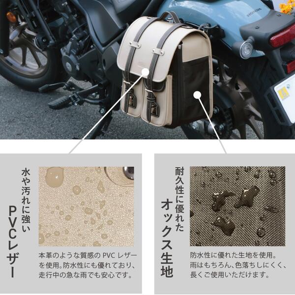 小型バイクにちょうど良いサイズのスリムな縦型サイドバッグ。