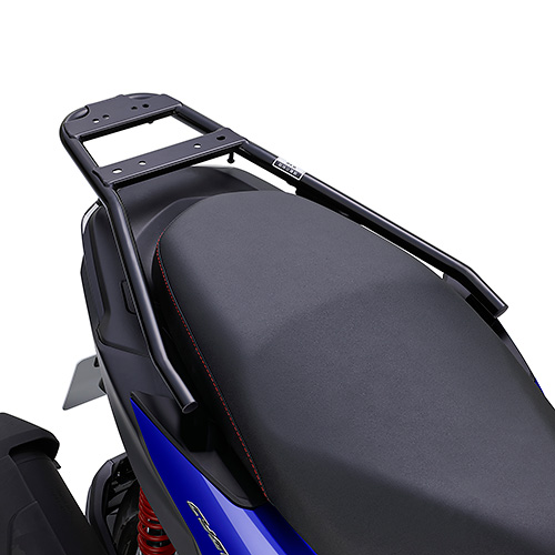 日常使いの必須アイテム、シグナスX専用リアキャリア。荷掛けフック付きで、ハンドルスタンディングとしても使いやすいリアキャリア。車両標準装着のグラブバーを取り外して取り付けます。