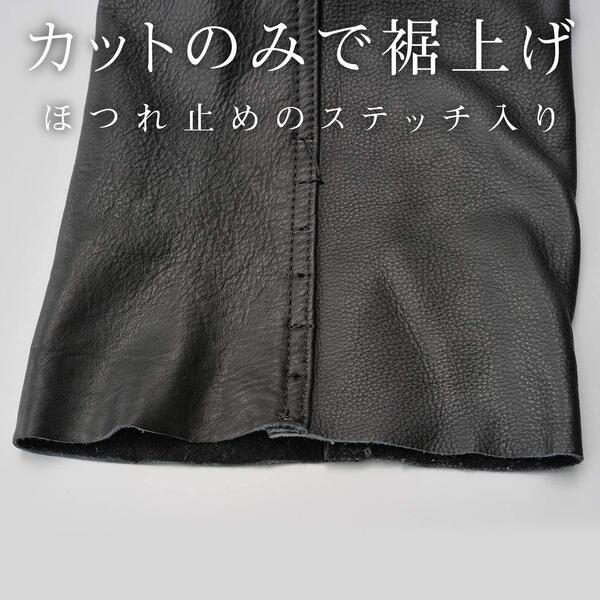 裾部にはカットのみで裾上げができるほつれ止めステッチ入り。