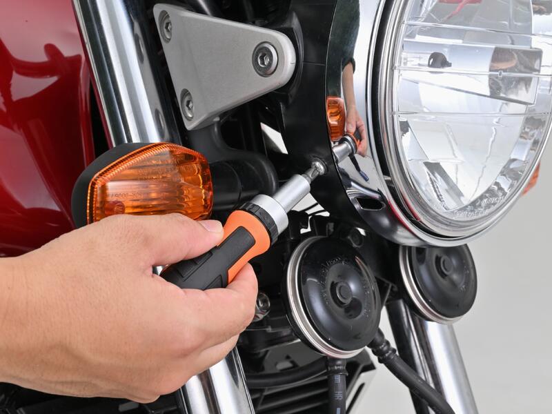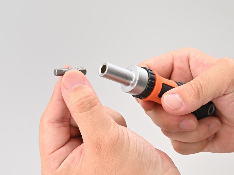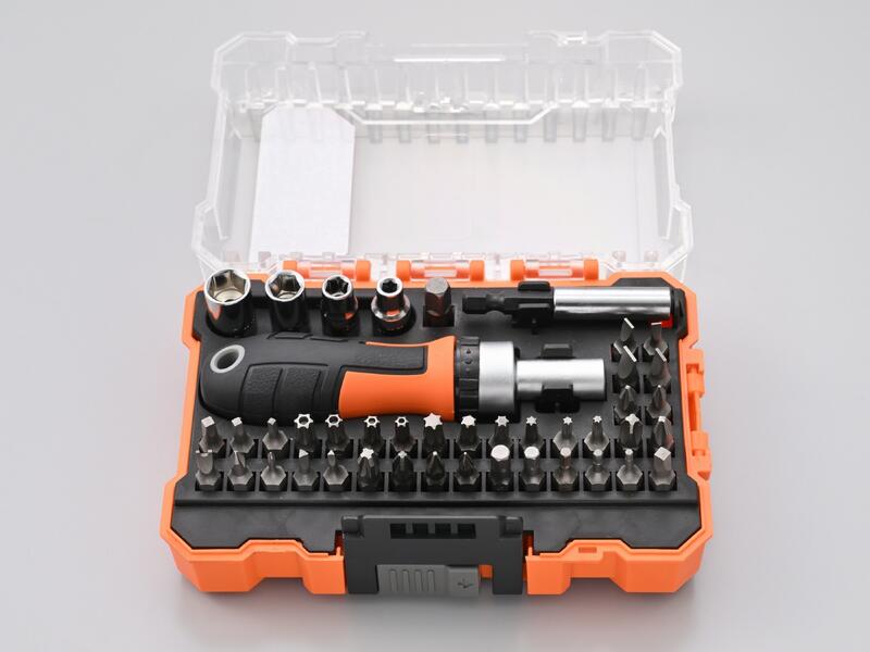 狭いスペースでも操作しやすい1/4インチビット用のラチェットドライバーと、4サイズの六角ソケット、36種類のビットなどを組み合わせた高機能ツールセット。