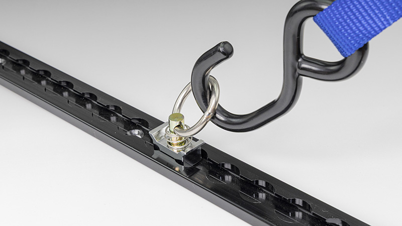 ワンタッチレールと併用する事で、オートバイ等を固定する為のアンカーリングとしての利用が可能なだけでなく、ワンタッチで脱着できる為、用途に合せたアンカーの位置決めができる優れ者です。